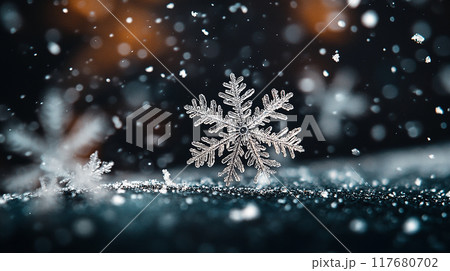 美しい雪の結晶、冬をイメージとした背景素材。企業ホームページやPPTなどの装飾用。