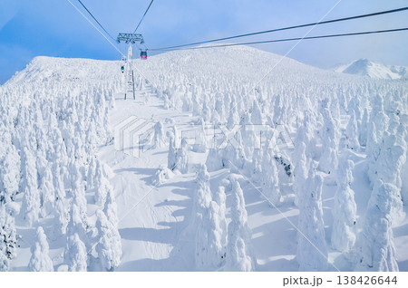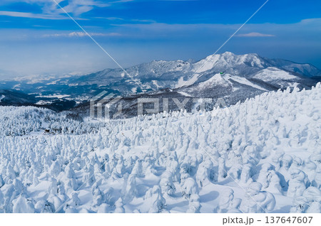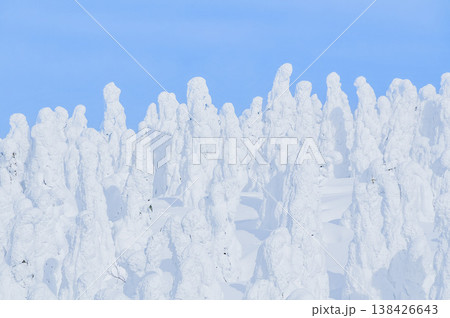 【快晴】蔵王のスノーモンスター、紺碧の空に映える純白の樹氷と冬の絶景