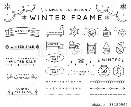 シンプルな冬のフレームのセット 雪 飾り 装飾 あしらい 枠 境界線 見出し 吹き出し タイトル