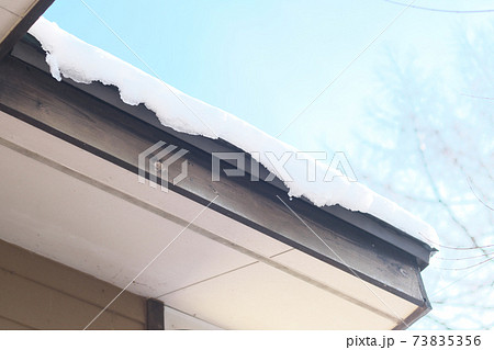 屋根に積もった雪が解けてしずくとなり落ちる