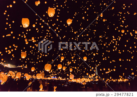 新潟 津南雪まつり 舞い上がるスカイランタン