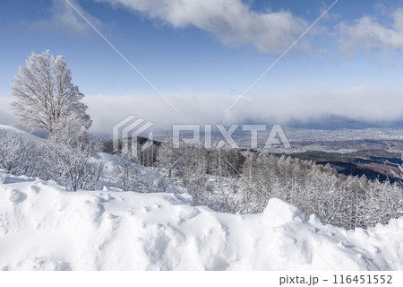 美ヶ原公園沖線沿いから望む雪景色(県道62号線)