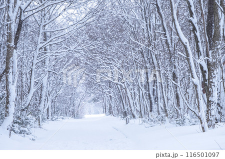 雪の積もった森の道 蒜山高原