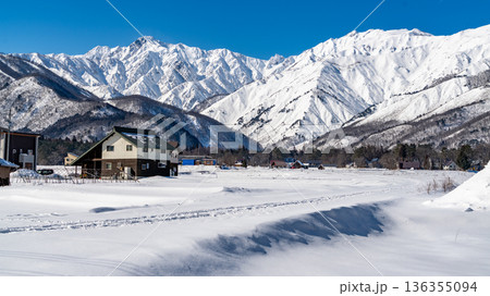 冬の晴れた日の冬景色 五竜岳を望む絶景