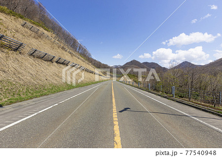 三月、残雪の美幌と弟子屈町を結ぶ国道243号線