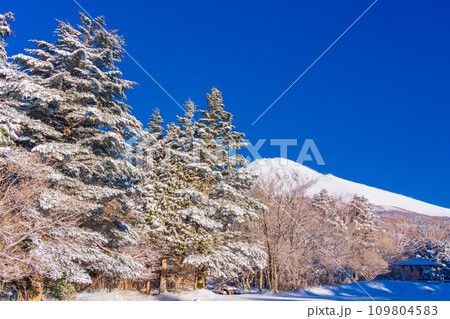 (静岡県)新雪が降った水ヶ塚公園から望む富士山