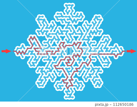 Labyrinth inside the snowflake shape. Creative Christmas flat maze. Puzzle related to frost, winter