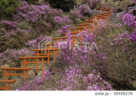 京都府宮津市獅子崎稲荷神社とみつばつつじを撮影したもの