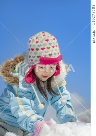 冬の公園で雪遊びをする女の子