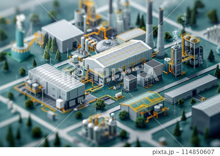 Industrial landscape with smoke stack from chimney of power plant factory by seashore