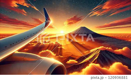 飛行機から見る初日の出と富士山|空からの新年の絶景