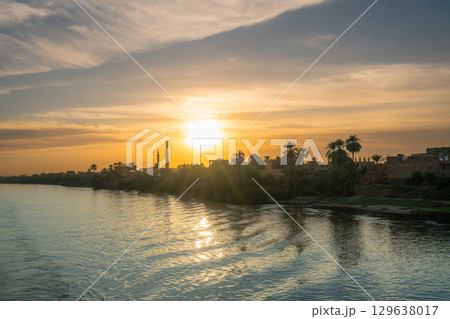 夕焼けの空を背景に飛行機が離陸・着陸する空港の風景空を飛ぶ旅客機