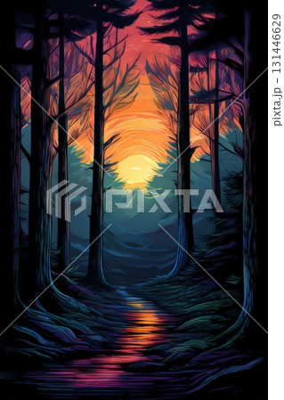 an AI Image Generator, Golden Sunset Over Mountain Peaks With River Cascade