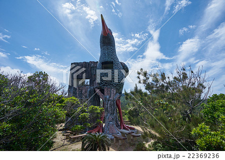ヤンバルクイナ展望台の全形を超広角撮影、沖縄本島最北端