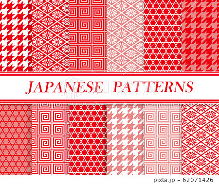 シームレスパターン16種類セット 市松模様や千鳥格子 和風な花の和柄のパターン背景素材