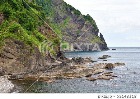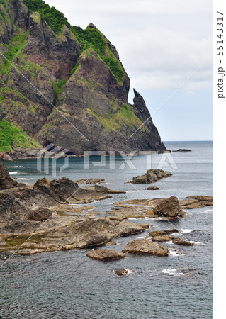 北海道岩内町雷電海岸で雷電岬の夏の風景を撮影