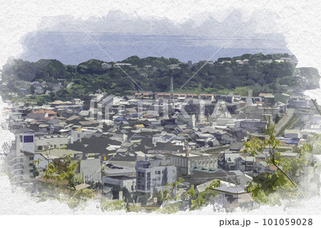 水彩画風 新宮 新宮市街地 関西電力送配電新宮電力所 和歌山県新宮市