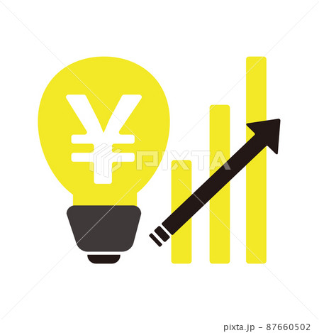 電気料金の値上がりで上昇するグラフと矢印のアイコンイラスト素材(フラット)