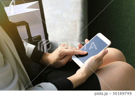 Office woman using mobile smart phone