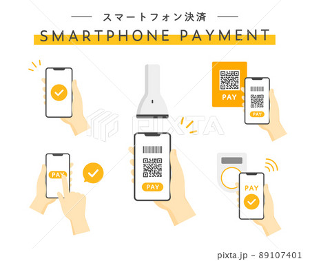 スマホ決済のイラストセット スマートフォン 支払い Pay 電子マネー キャッシュレス決済