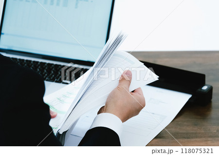 書類をスキャンする男性ビジネスマの手元