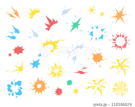 衝撃のエフェクトのシルエット素材セット_カラフル