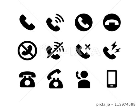 いろいろな電話のシンプルアイコンセット素材、ベクター