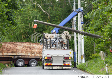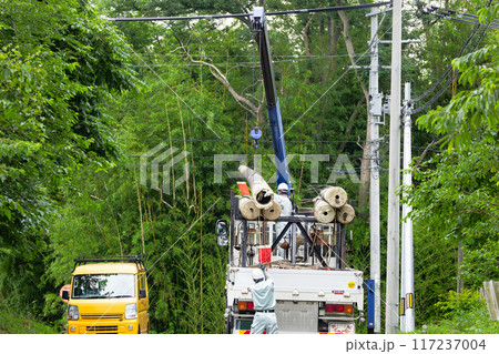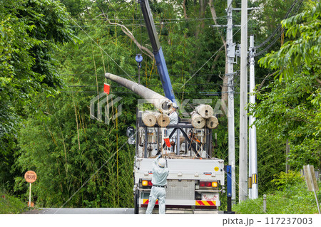 電柱積み込み中の画像素材(写真・イラスト) 1ページ目
