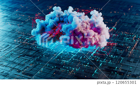 Futuristic Cloudscape: A Vibrant Dance of Color and Technology