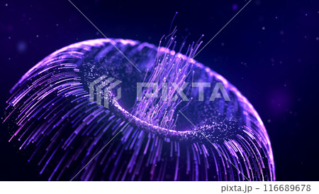 Underwater world of technology, neon jellyfish, animated particles, portal. Living nanotechnology floats. The future is under water. Ultraviolet, glows in space. 8k wallpaper 4k screensaver.