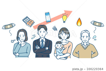様々な値上がりに困る人々のイラスト