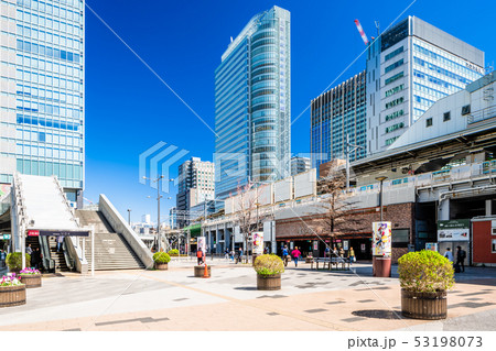 日本の横浜市景観 桜木町駅 南口や通過するEF210-113(JR貨物EF210形電気機関車)…