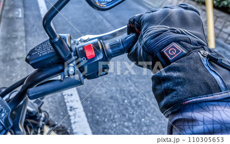 バイクライフ 電熱グローブでスマホを操作するライダー