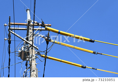 工事現場周辺の電線防護カバーと快晴の青空 c-2 高彩度