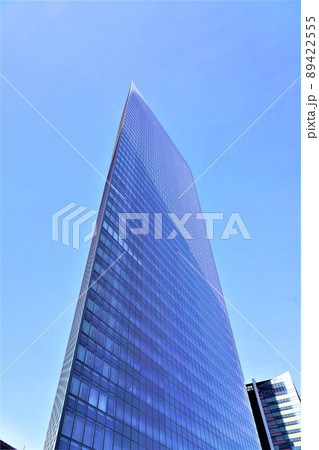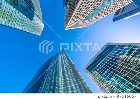 日本の東京都市景観 冬晴れの澄み切った青空が広がる汐留のオフィス群を望む