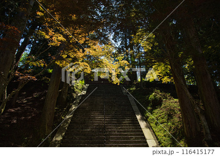 比叡山延暦寺 紅葉の根本中堂への参道石碑