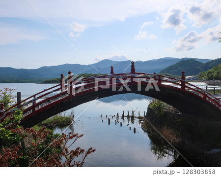 恐山の三途の川に架かる赤い橋 神秘的で厳かな霊場の風景