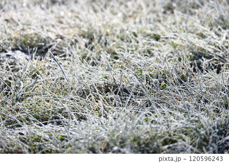 朝霜が降りた芝生 草地