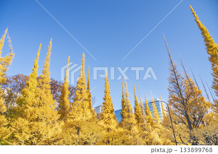 秋の東京の観光名所 明治神宮外苑のイチョウ並木【東京都・港区】