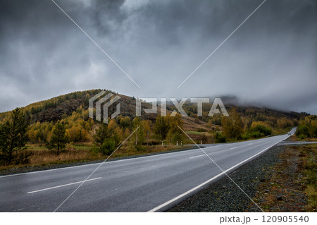 Road in the mountains with low clouds