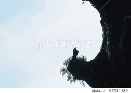 霧島神宮の御神木に宿る烏帽子を被った神官
