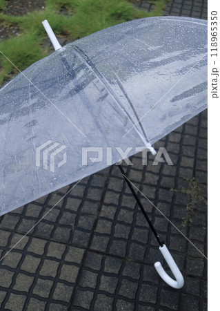 閉じたビニール傘を持つ手_雨
