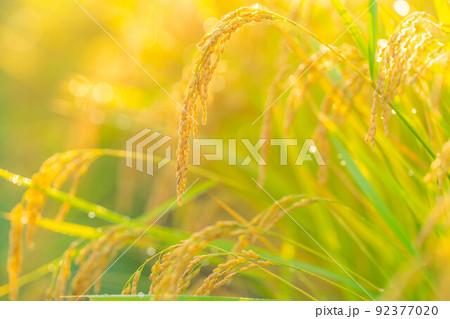 【秋素材】朝露をまとった稲【長野県】