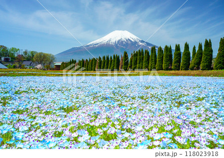 (山梨県)ネモフィラ咲く花の都公園から、富士山