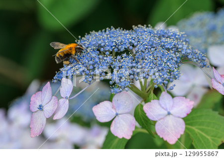 花粉を集めるミツバチとガクアジサイ