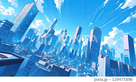 夏の青空と街並み