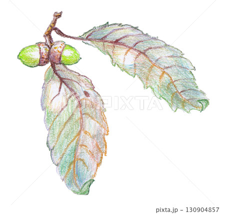 色鉛筆とクレヨンで描いた緑のどんぐり