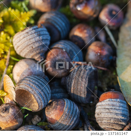 冬の朝 地面に落ち濡れた団栗達をマクロ撮影03