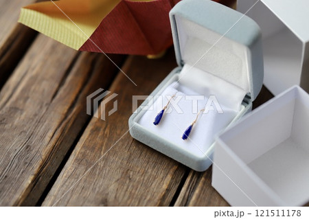 勾玉イヤリング ジュエリー 手描き水彩画 ゴールド 金メッキ