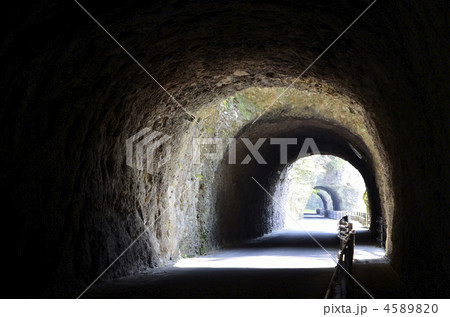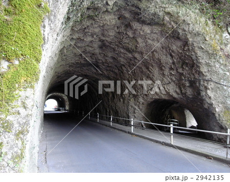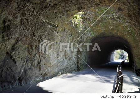 耶馬渓 夏の青の洞門 ドライブイメージ(白いミニバン) ①